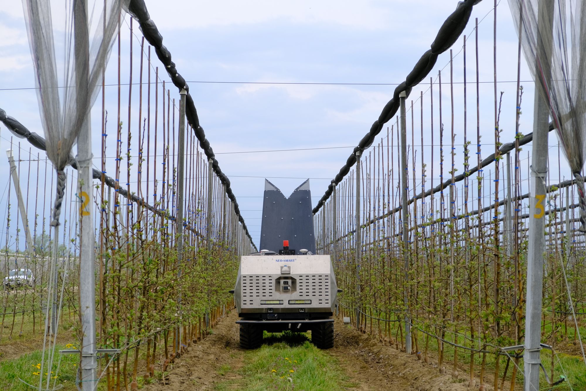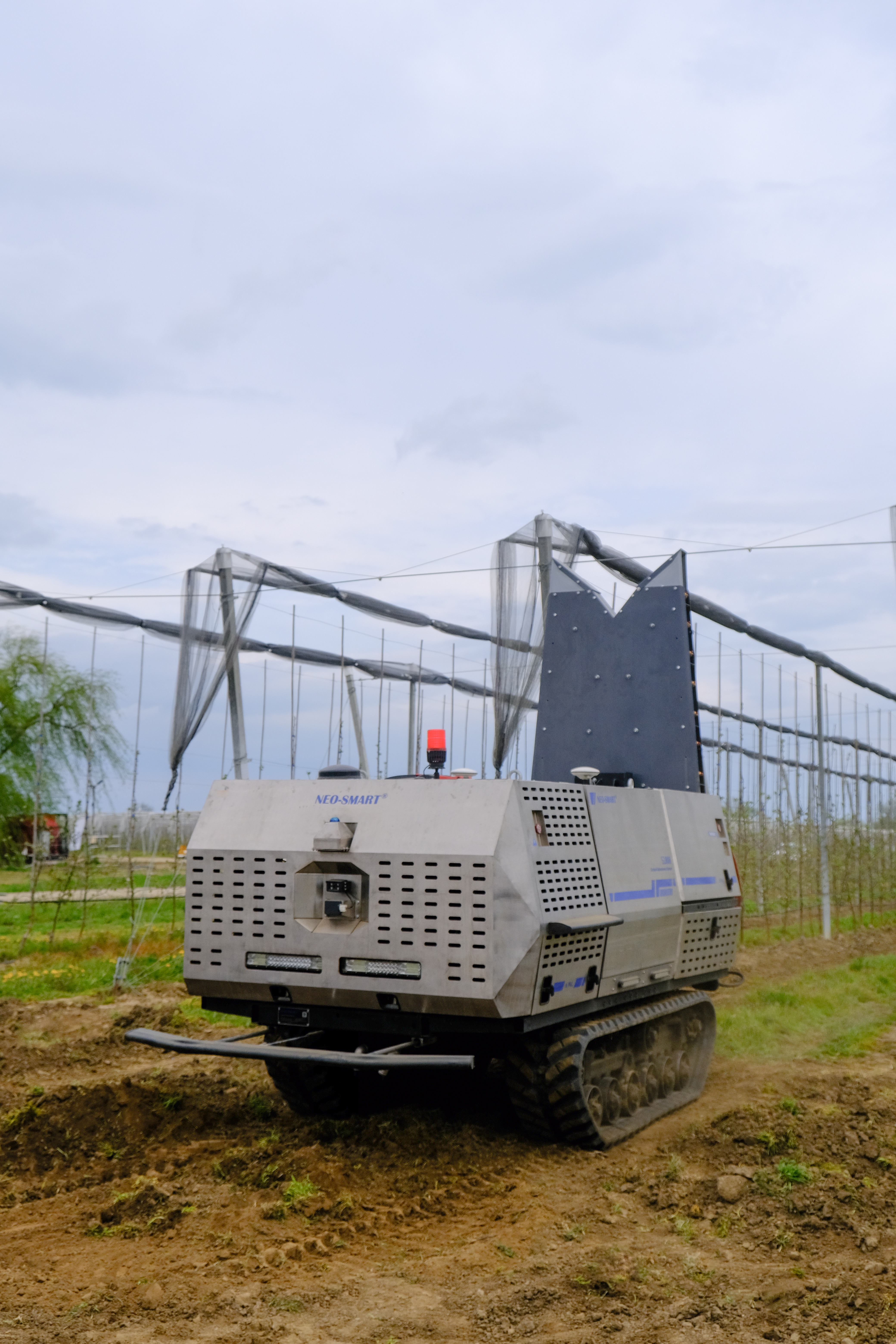 Главная особенность дня — техника была не просто представлена, а работала в реальных условиях сада. Ключевым акцентом стал живой показ роботизированного опрыскивателя на участках с разной схемой посадки (3×0,7 и 5×2). Такой формат позволил участникам увидеть разницу в решениях, оценить качество обработки и понять, какие агрегаты действительно дают результат в конкретных условиях хозяйства.