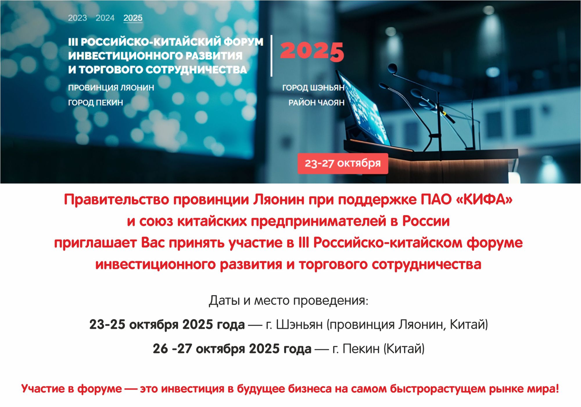 Форум пройдет с целью укрепления российско-китайских стратегических отношений и активного развития всестороннего взаимодействия в сфере торговли, инвестиций и производства в регионах России и Китая.